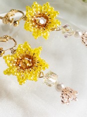 黄色一色ではないので、子供っぽくならず、大人の女性にも似合う、そんなイヤリングになりました。