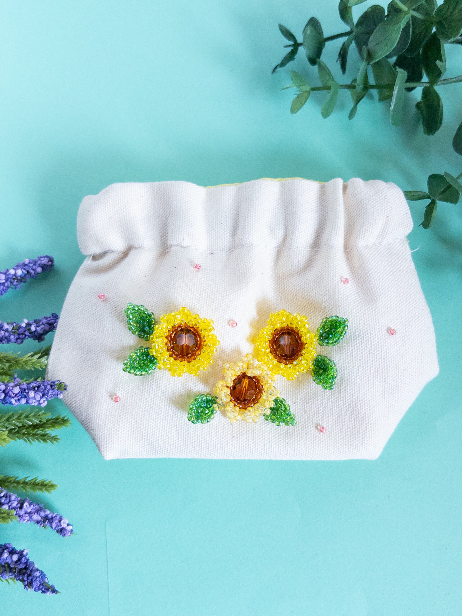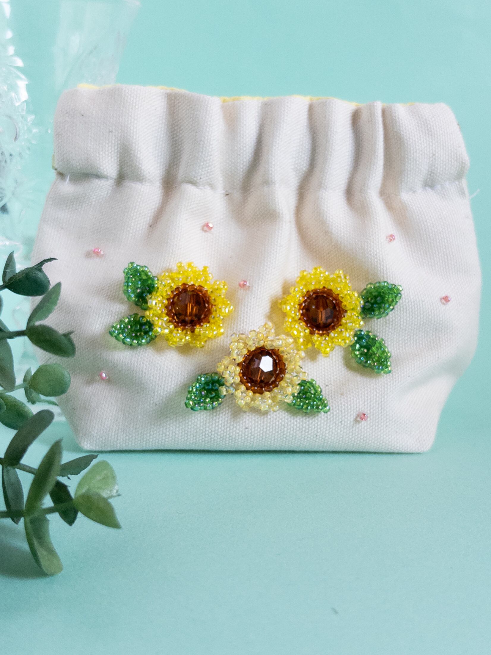 ひまわりのビーズ刺繍バネ口ポーチで、明るい気持ちを日常に取り入れてみませんか?