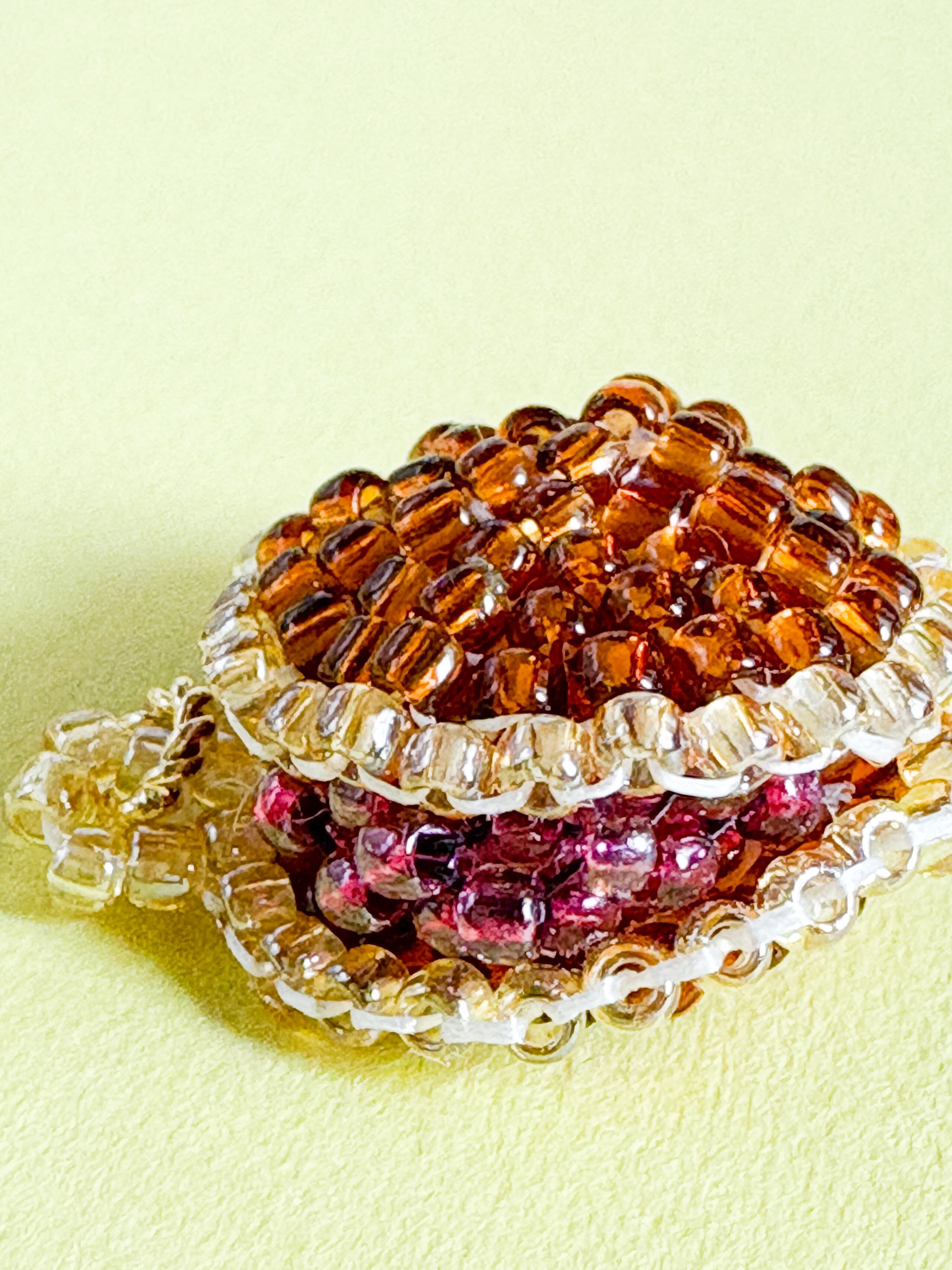 あんこの部分は特にこだわりを持って制作しており、ビーズの色合いを工夫して本物のように仕上げています。