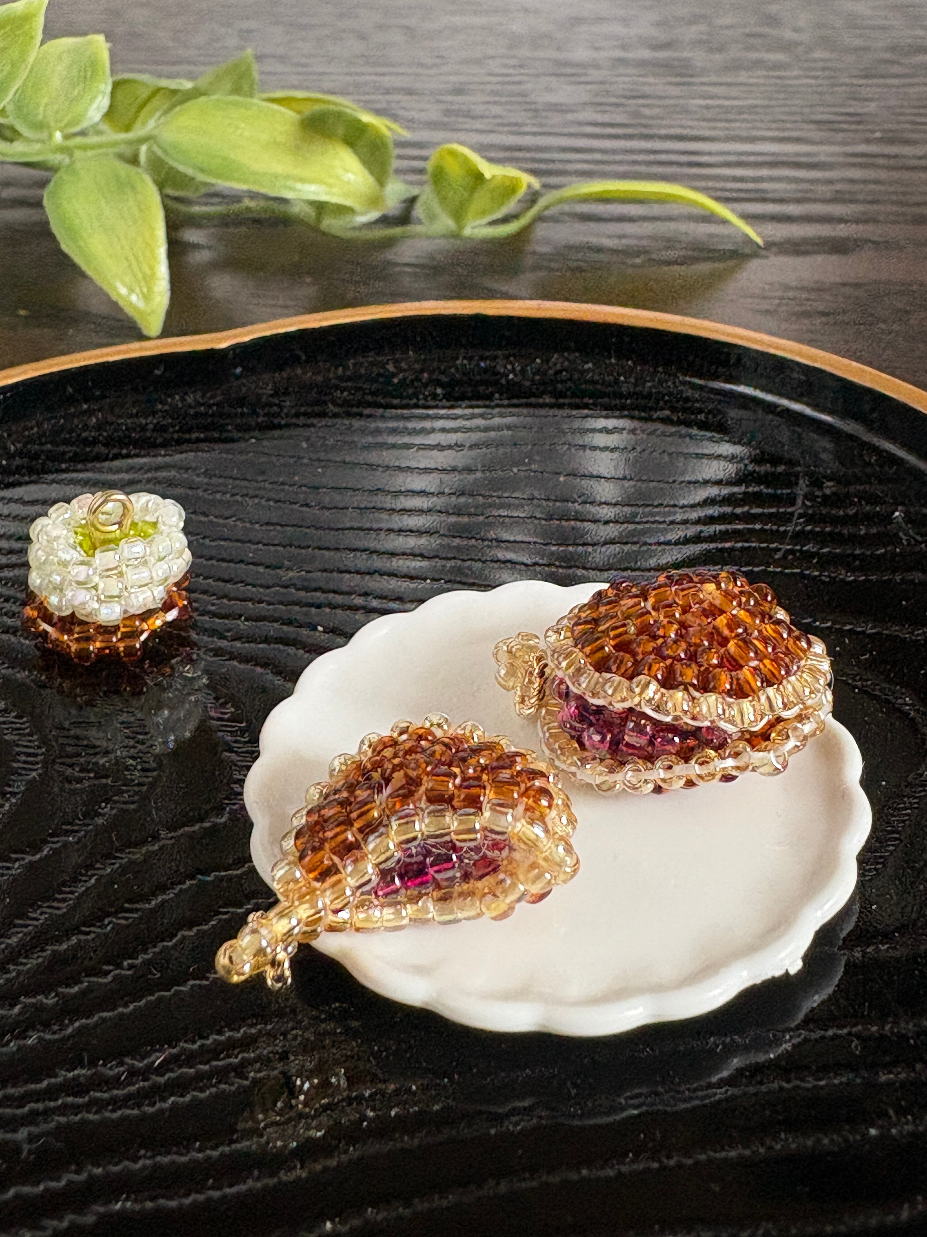 あんこたっぷりのどら焼きのピアス&イヤリングを作りました。