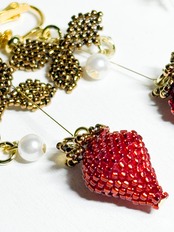 この作品は、キラキラとした輝きと落ち着いた色合いが特徴で、まるで本物のいちごを耳元に飾っているかのような美しさがあります。