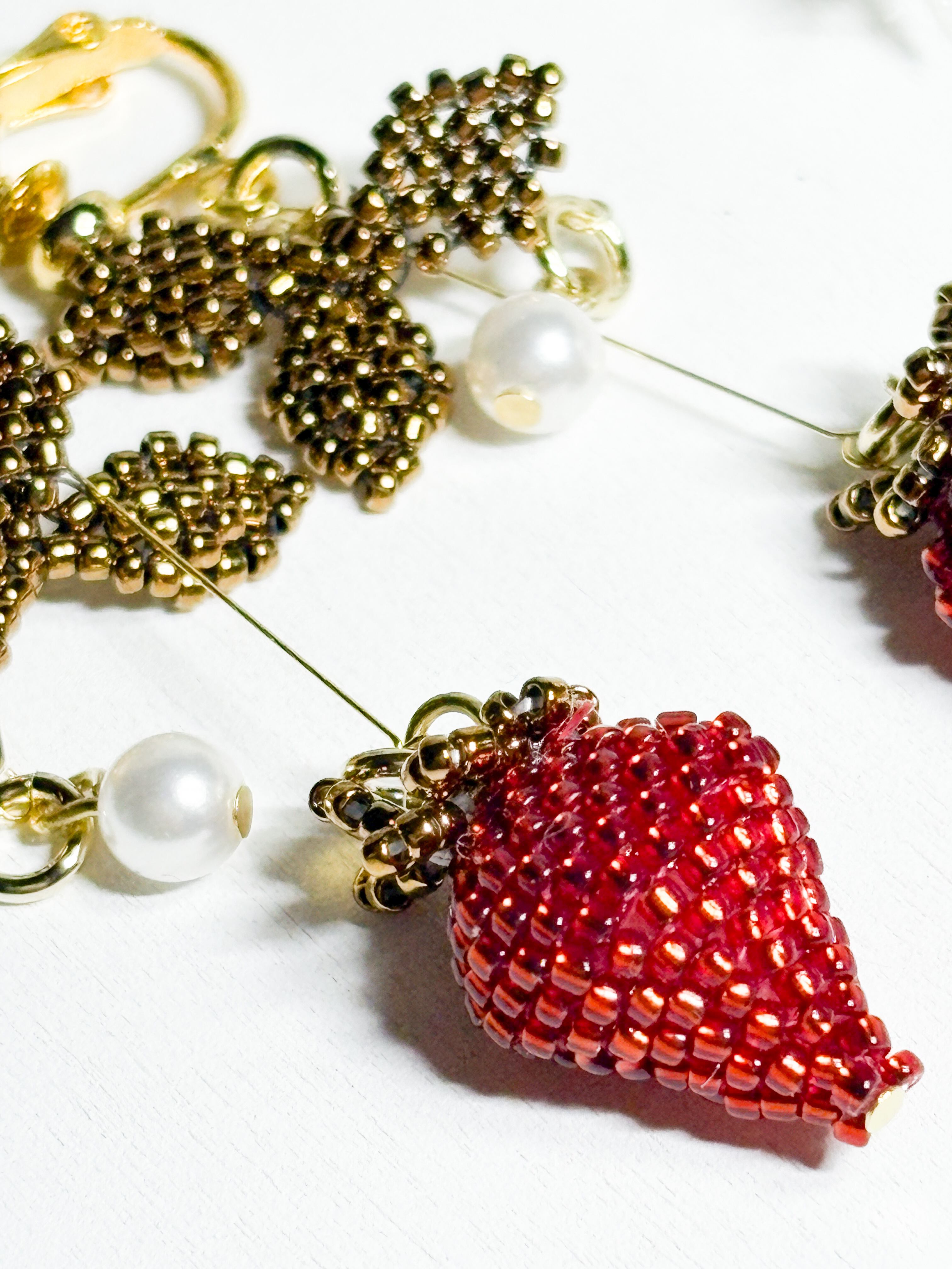 いちごの耳飾りを作りました。