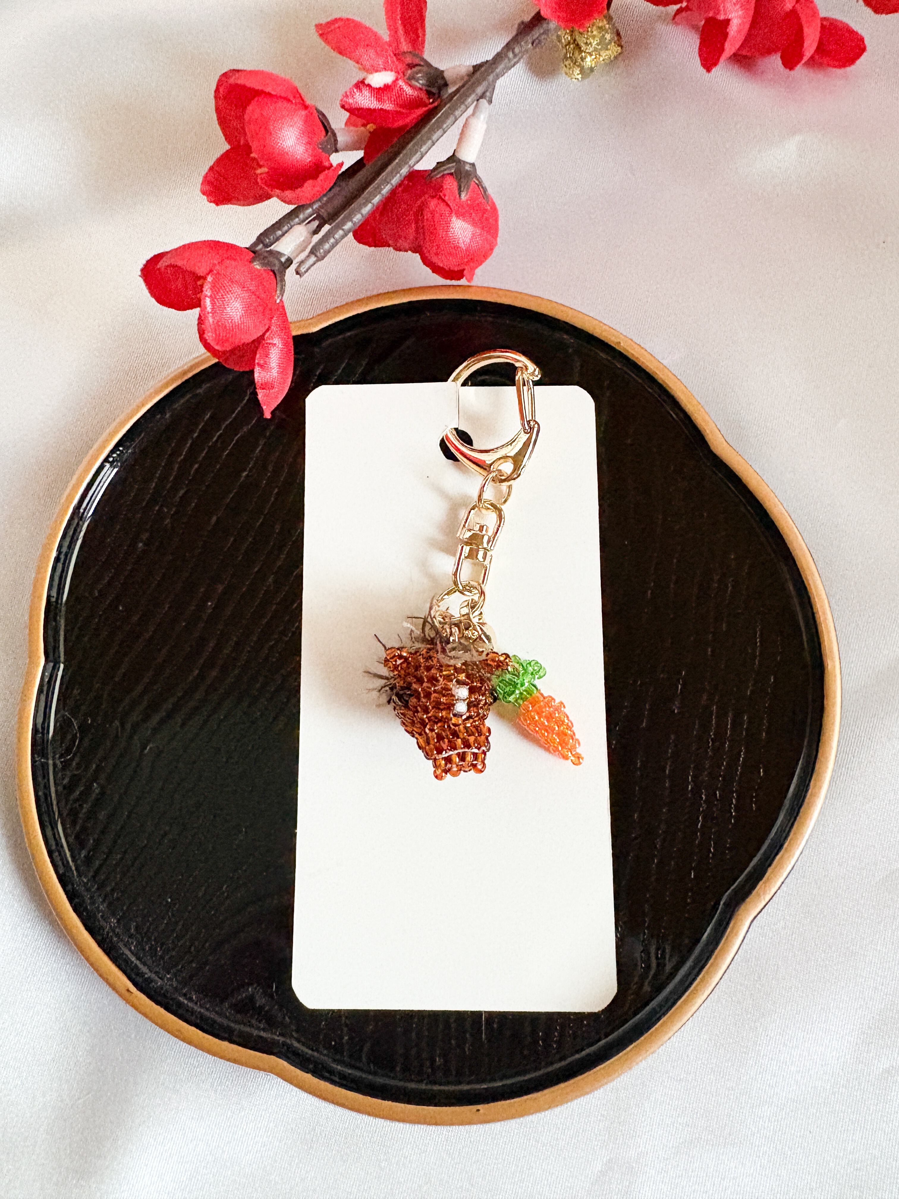 この作品は、可愛らしい馬のデザインと共に、小さなにんじんチャームをつけました。