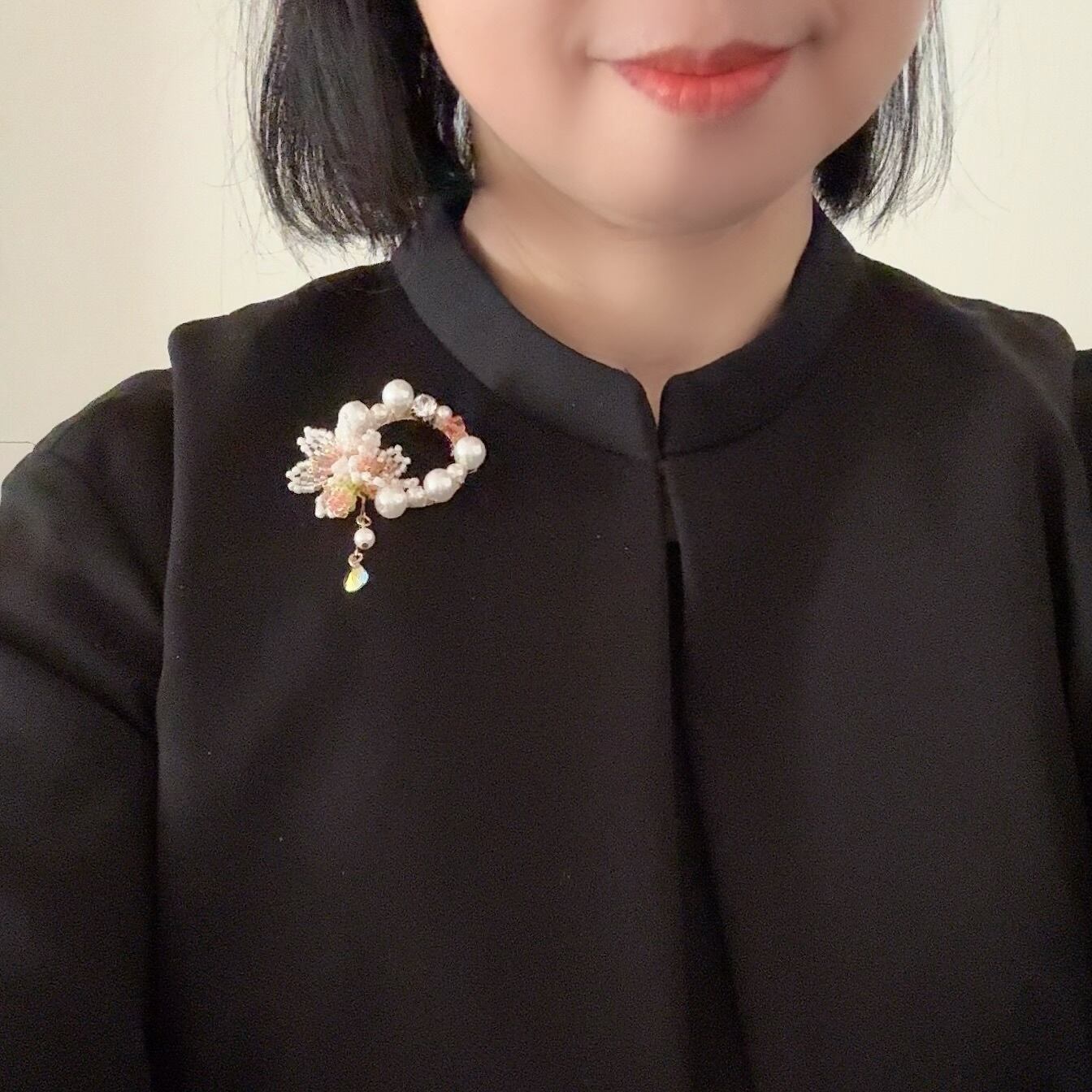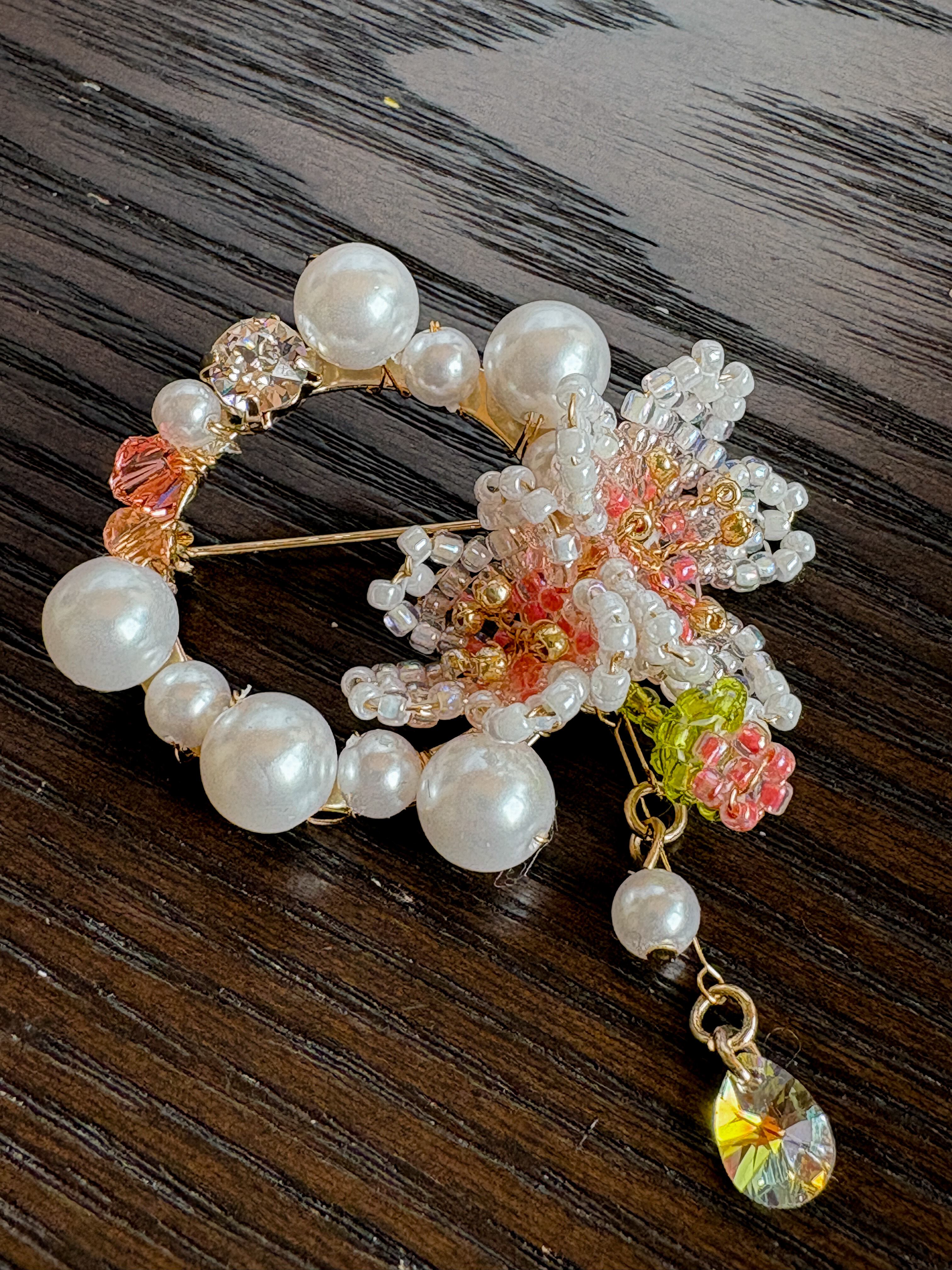 このブローチは、ビーズで作られた桜のモチーフが特徴で、入学式や卒業式など特別なシーンにもぴったりのアイテムです。