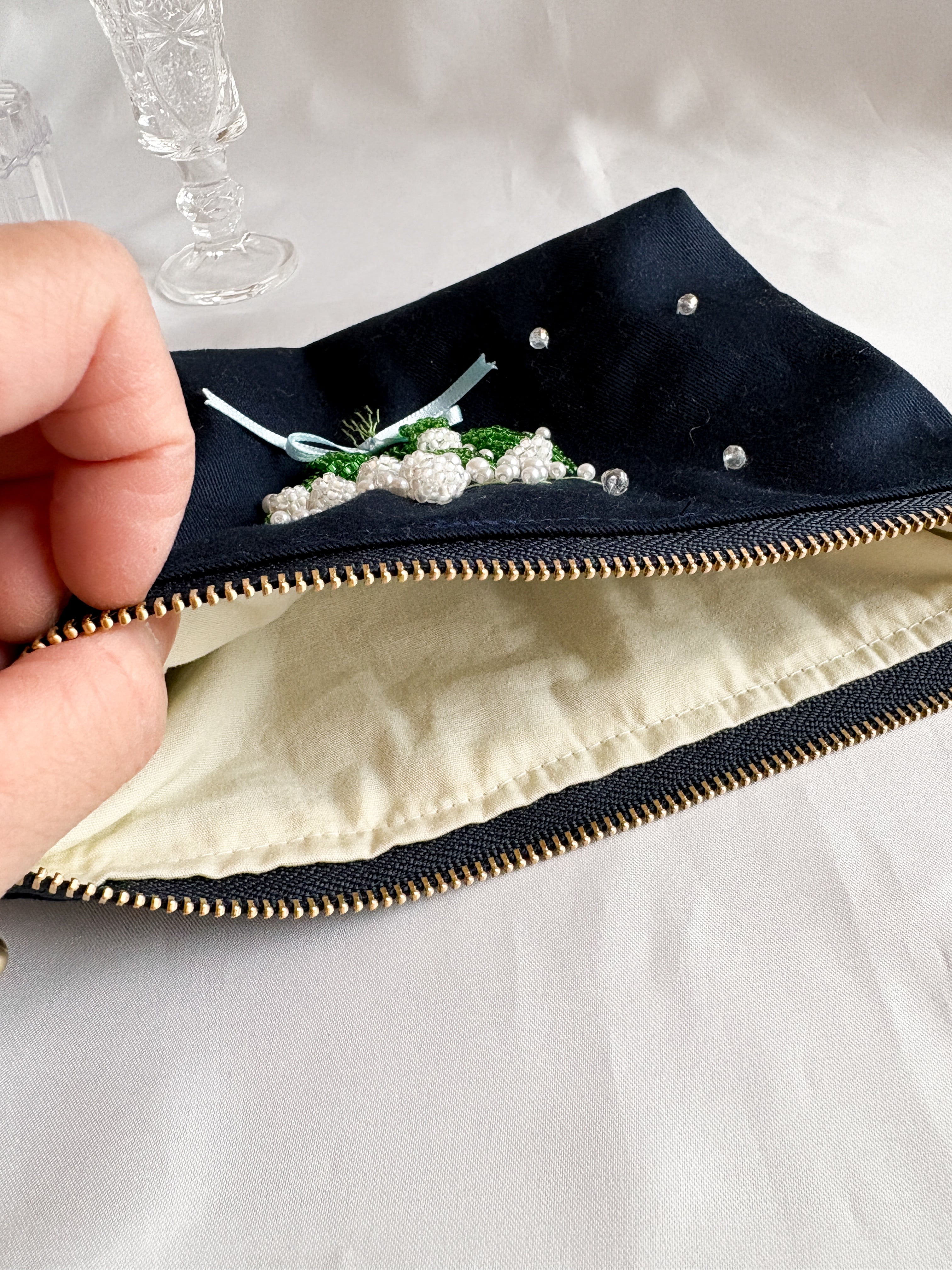 すずらんのビーズ刺繍ポーチ[母の日プレゼント]