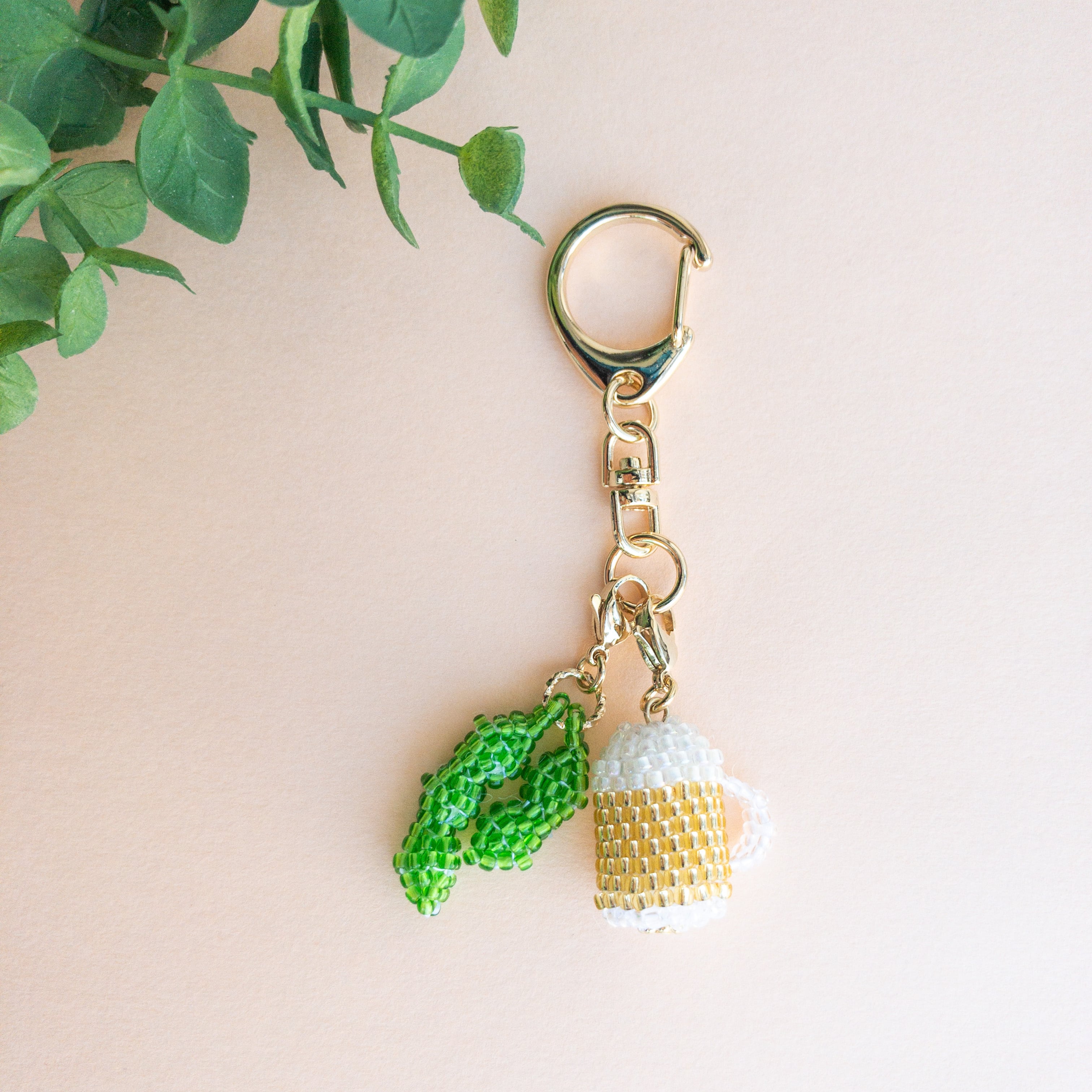 私はビールは飲めませんが、仕事の疲れが出てくるこの時期に、元気を出して仕事を頑張ってもらいたい...そんな気持ちでこのキーホルダーを作りました。