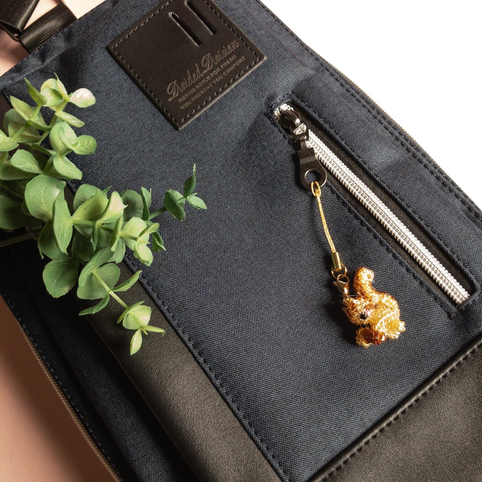 ストラップに仕上げてありますが、カニカンでモチーフを取り外せるようになっているので、ファスナーなどの小さな穴につけることも可能です。