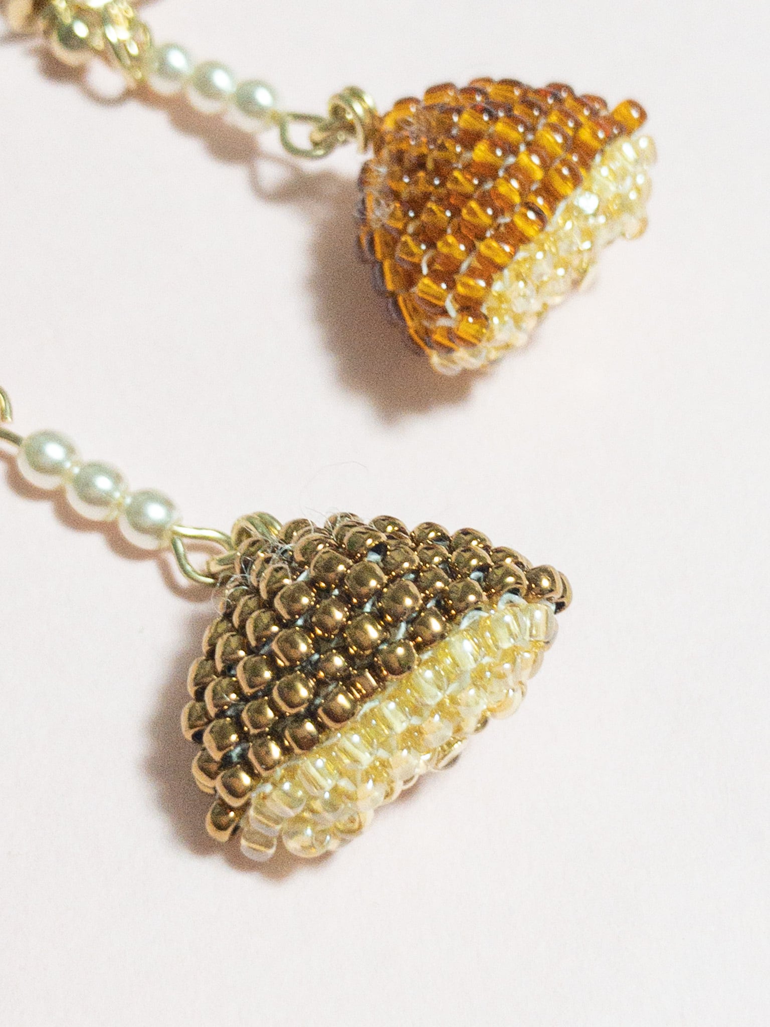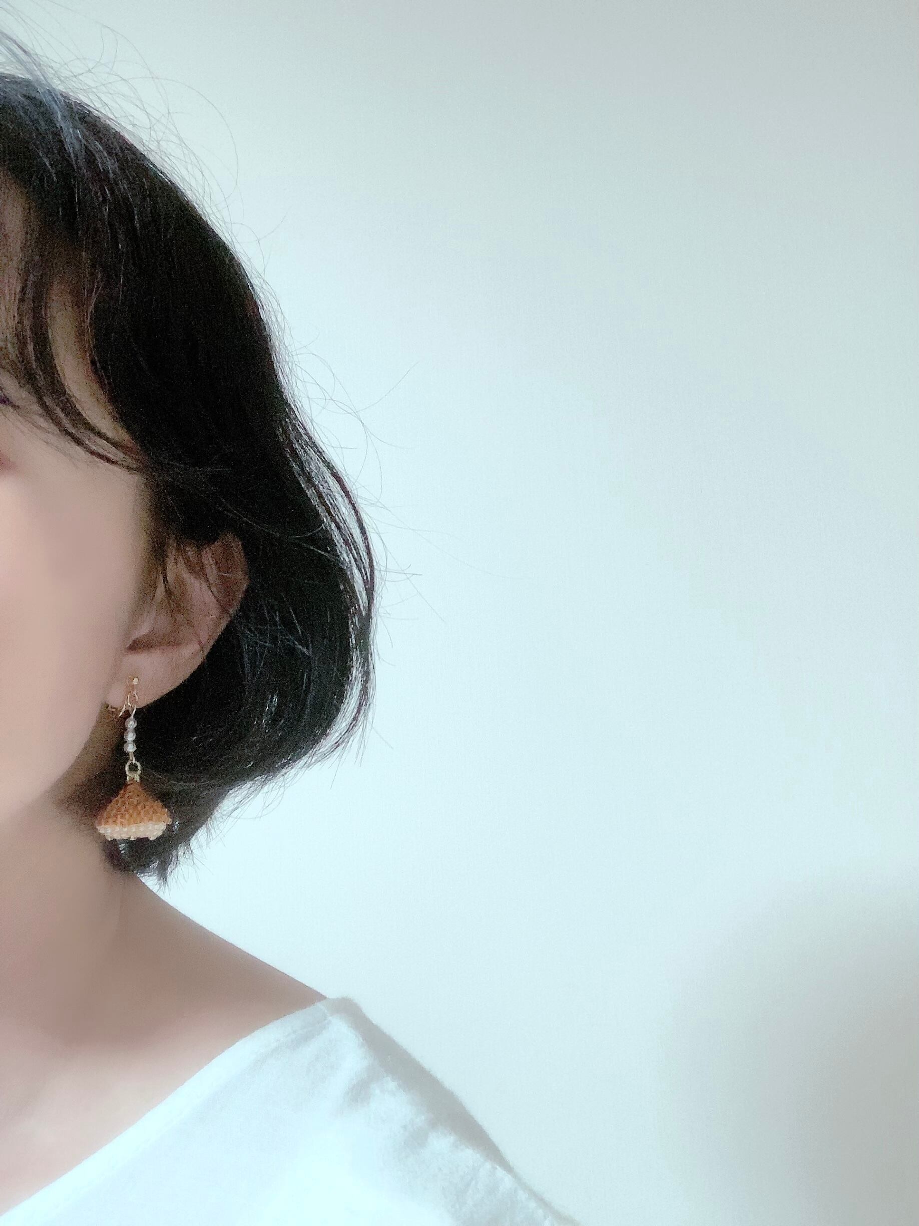 小さなビーズで栗モチーフを作り、イヤリングやピアスにしました。
