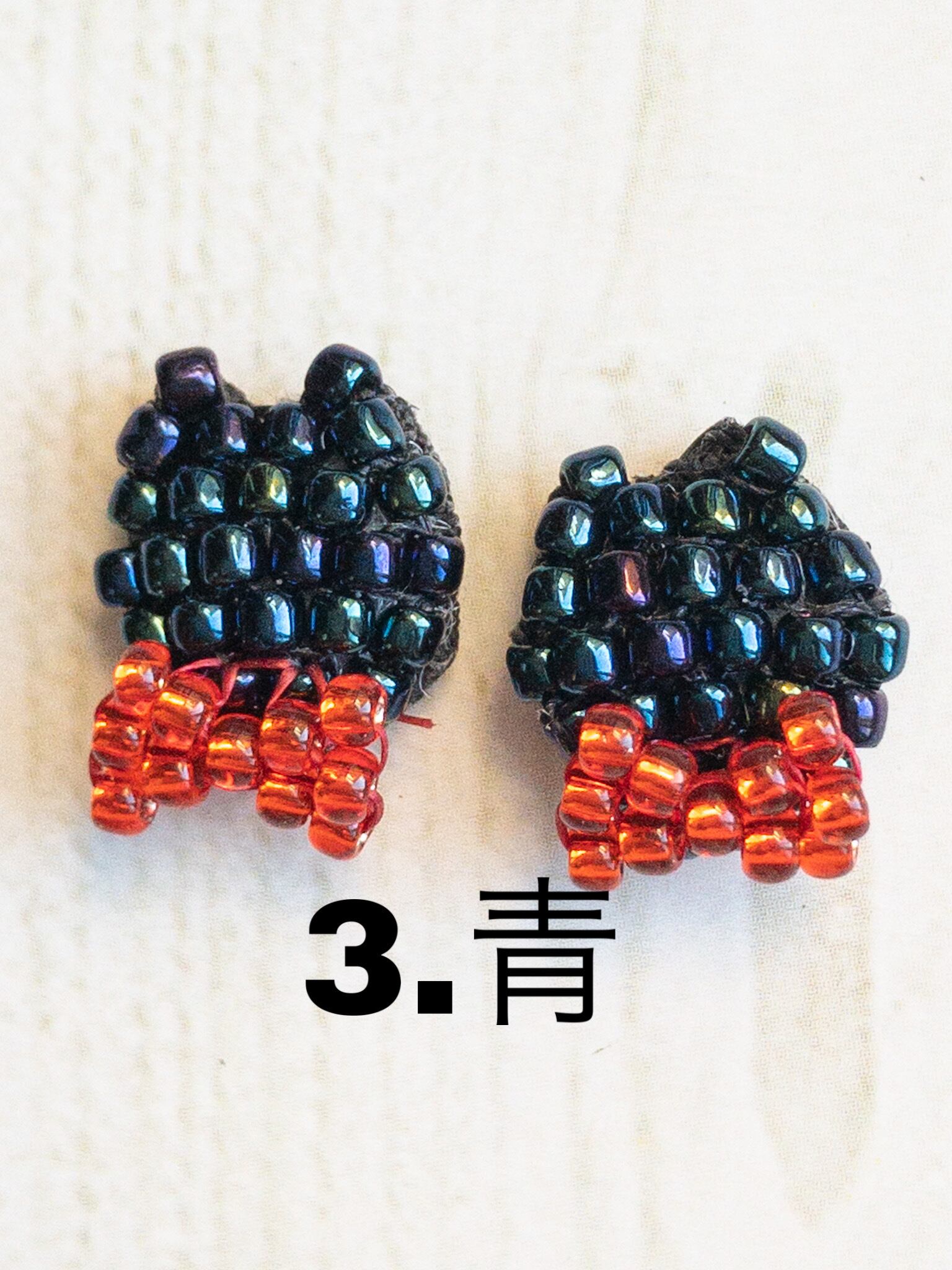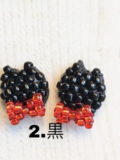 クロネコの顔をビーズで作ったイヤリングができあがりました。