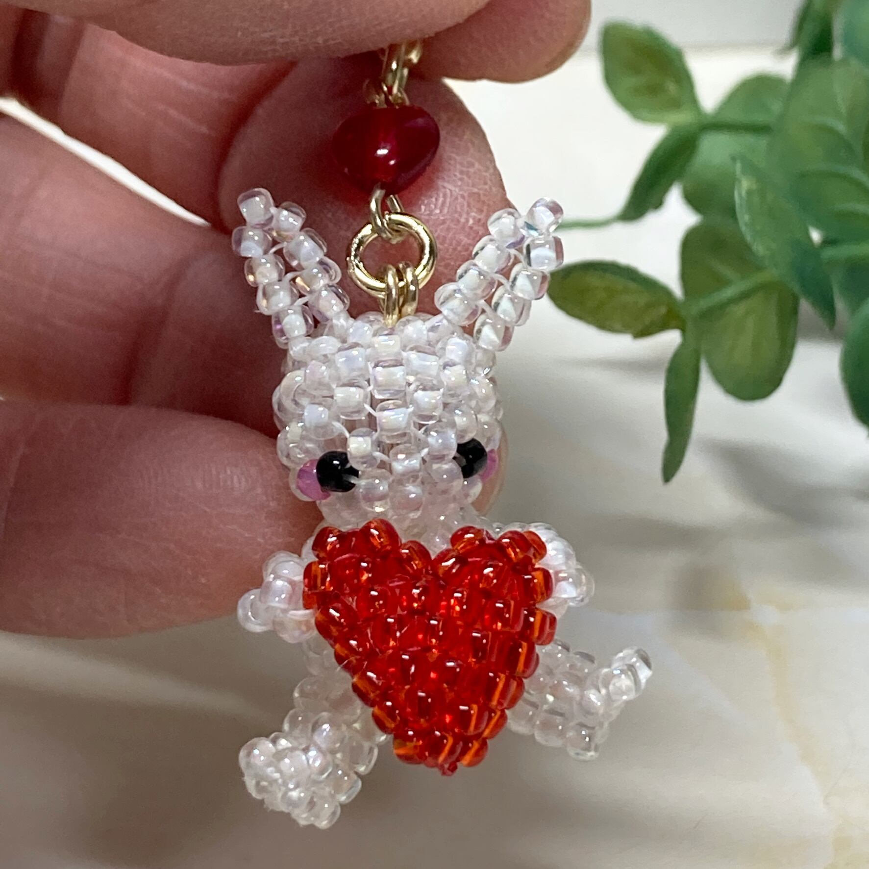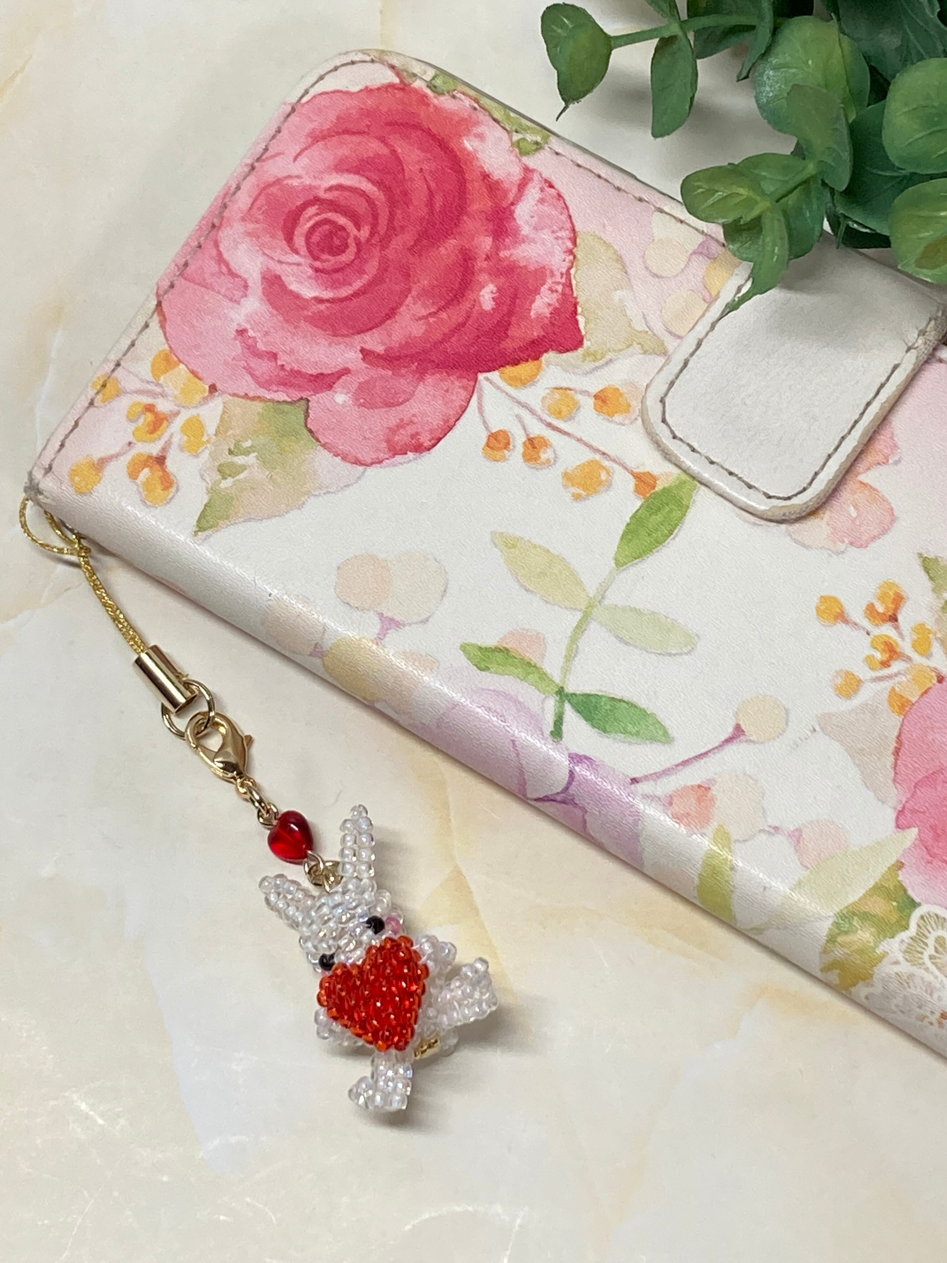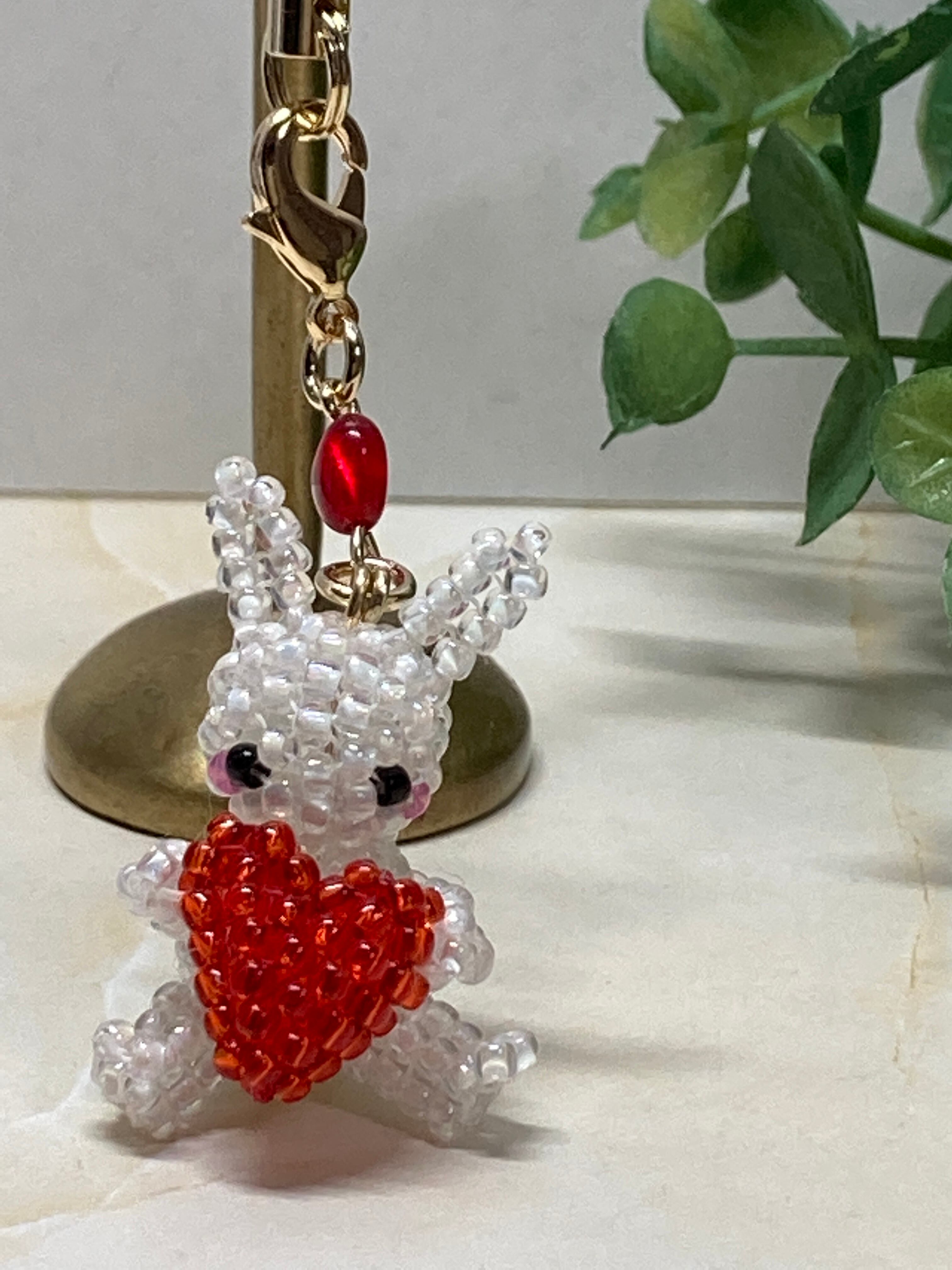 ハートを胸に抱いたうさちゃんのストラップを作りました。