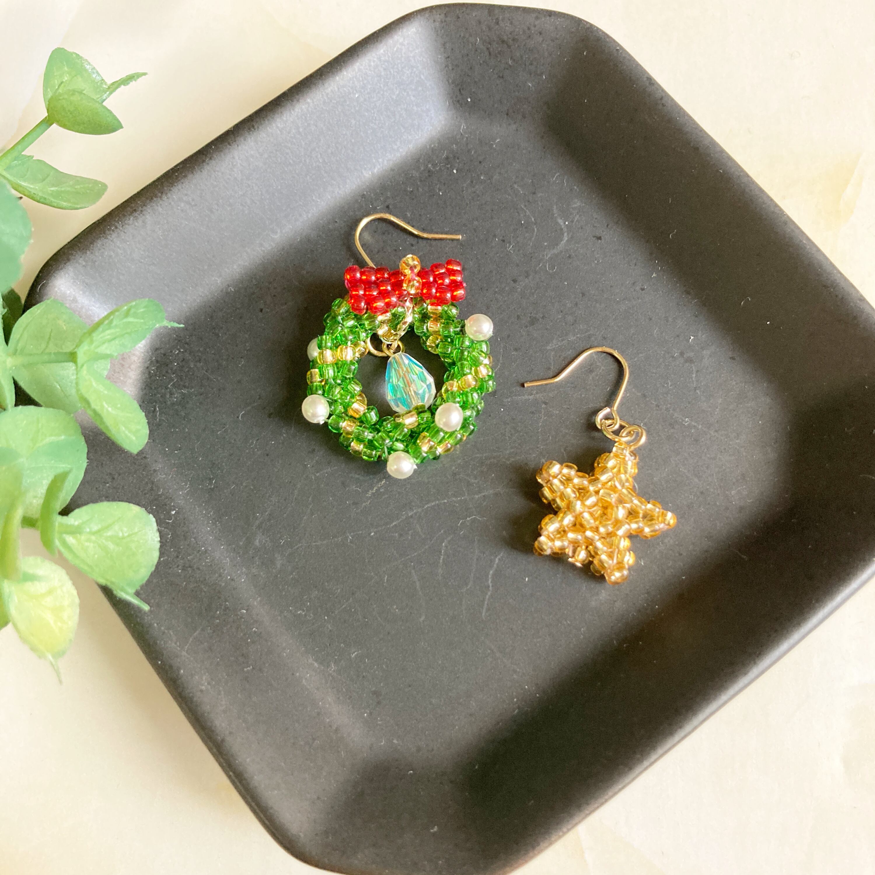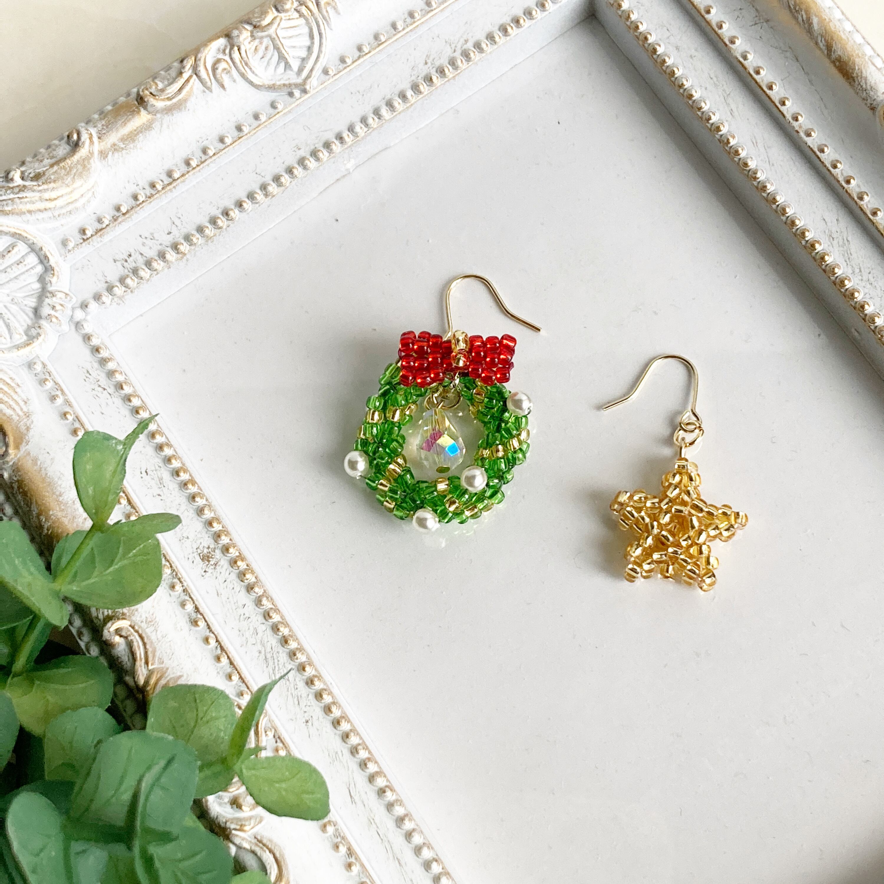 ピアスにぴったりのミニサイズのクリスマスリースです。