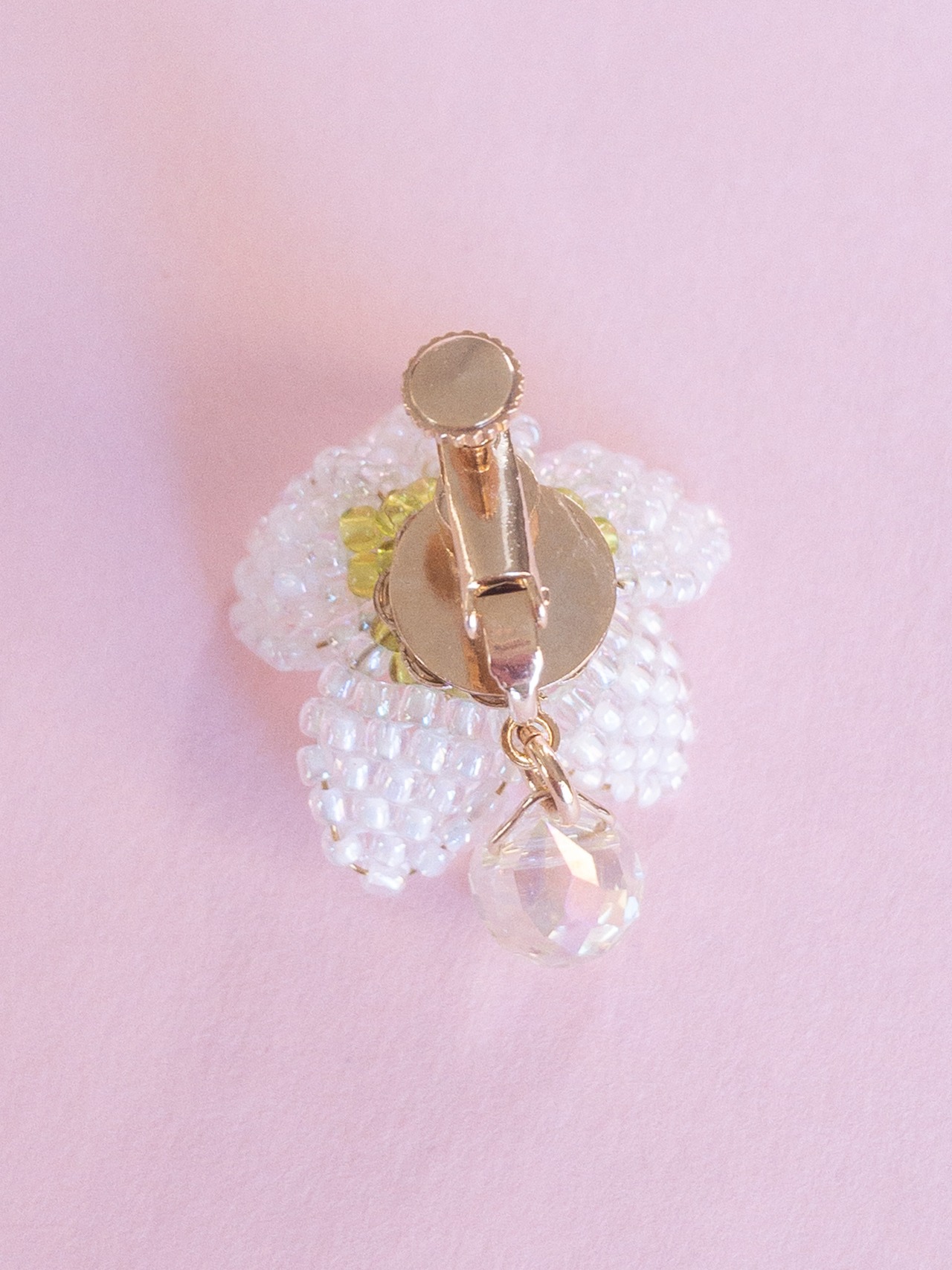 クリスマスローズにクリスタルビーズがついたピアス&イヤリングです。