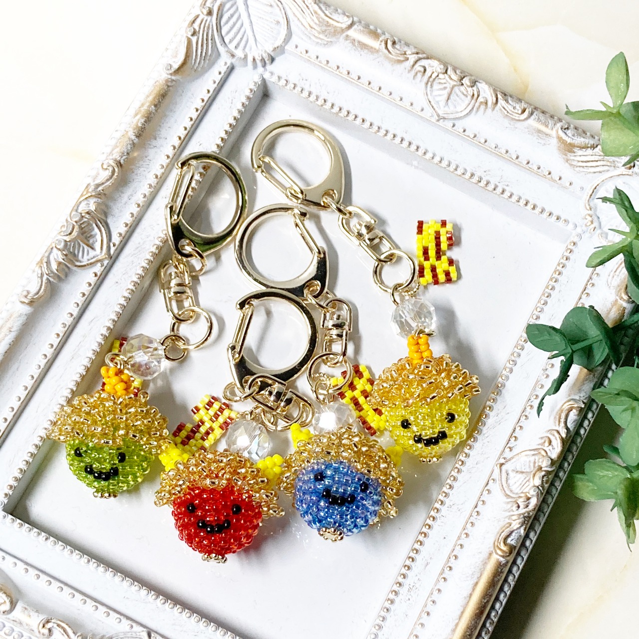 また、オニと一緒にキラキラ光るガラスビーズと小さいオニのパンツをつけました。