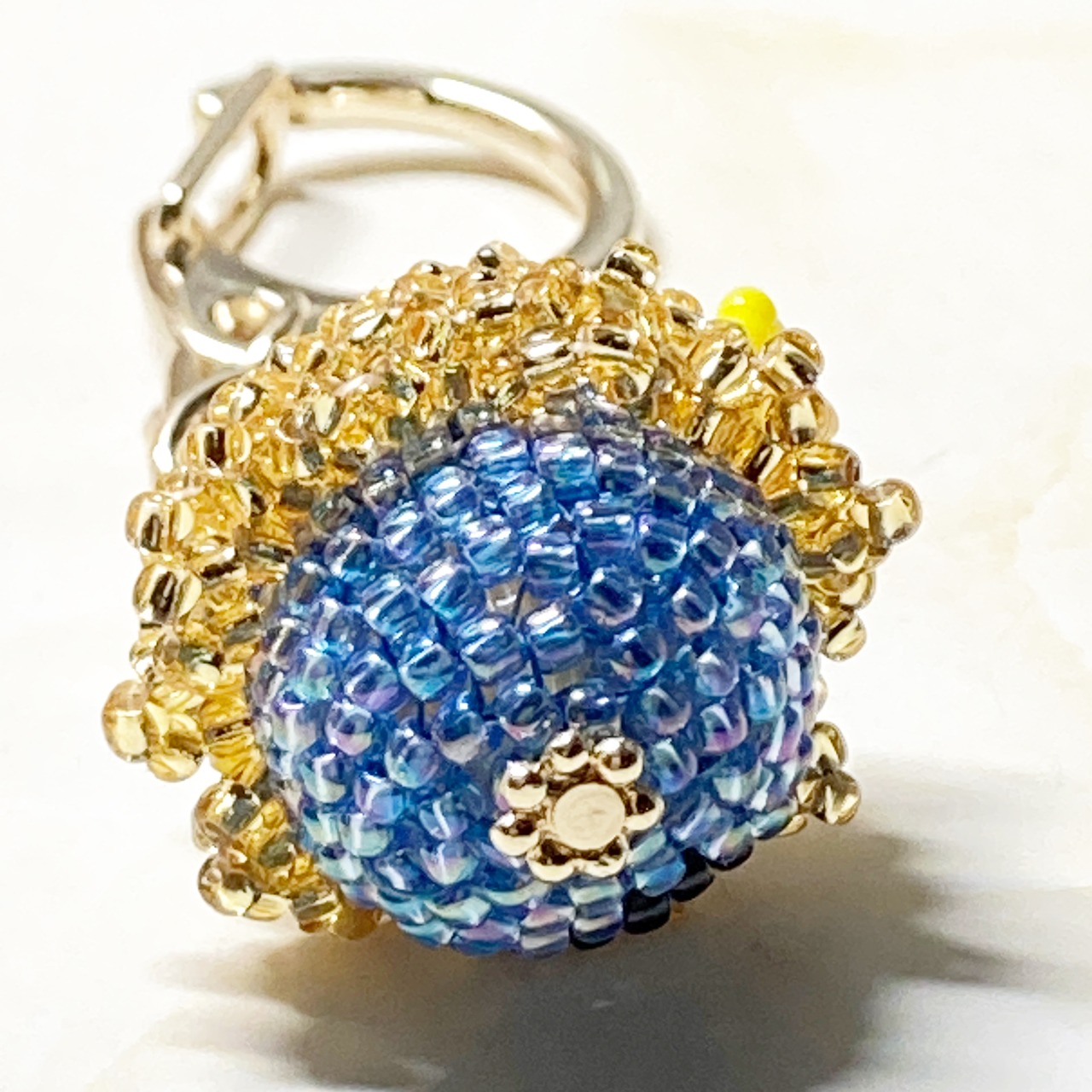 ビーズステッチという技法で作っており、針と糸で編んで作っています。