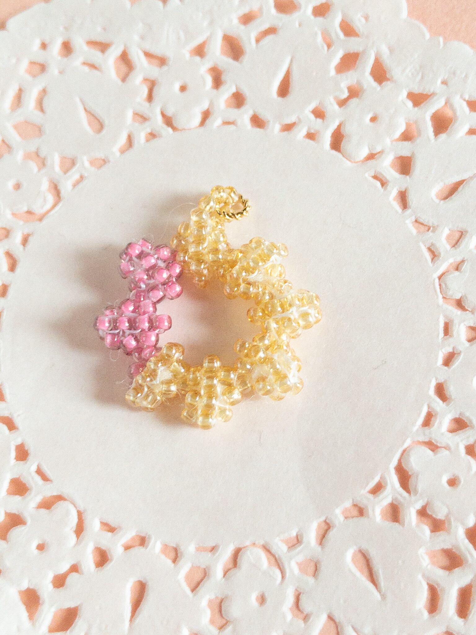ビーズはドーナツの生地部分は透明感のあるビーズを使っているので、キラキラして綺麗です。