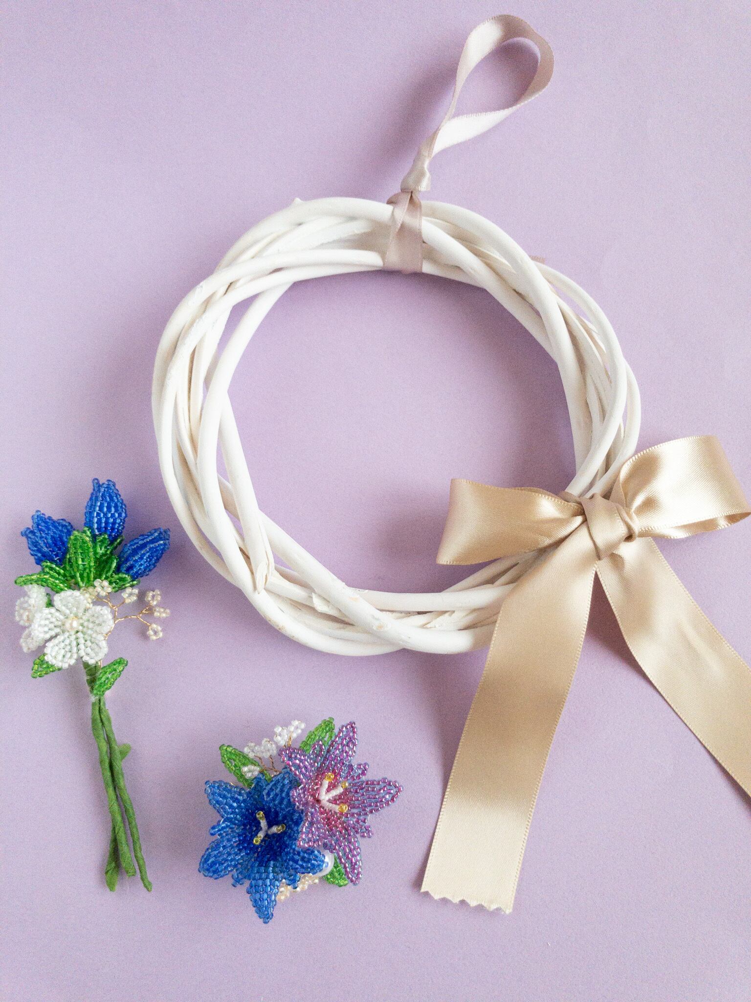 キラキラのビーズフラワーのリースで、心和む日々をお過ごし下さい。