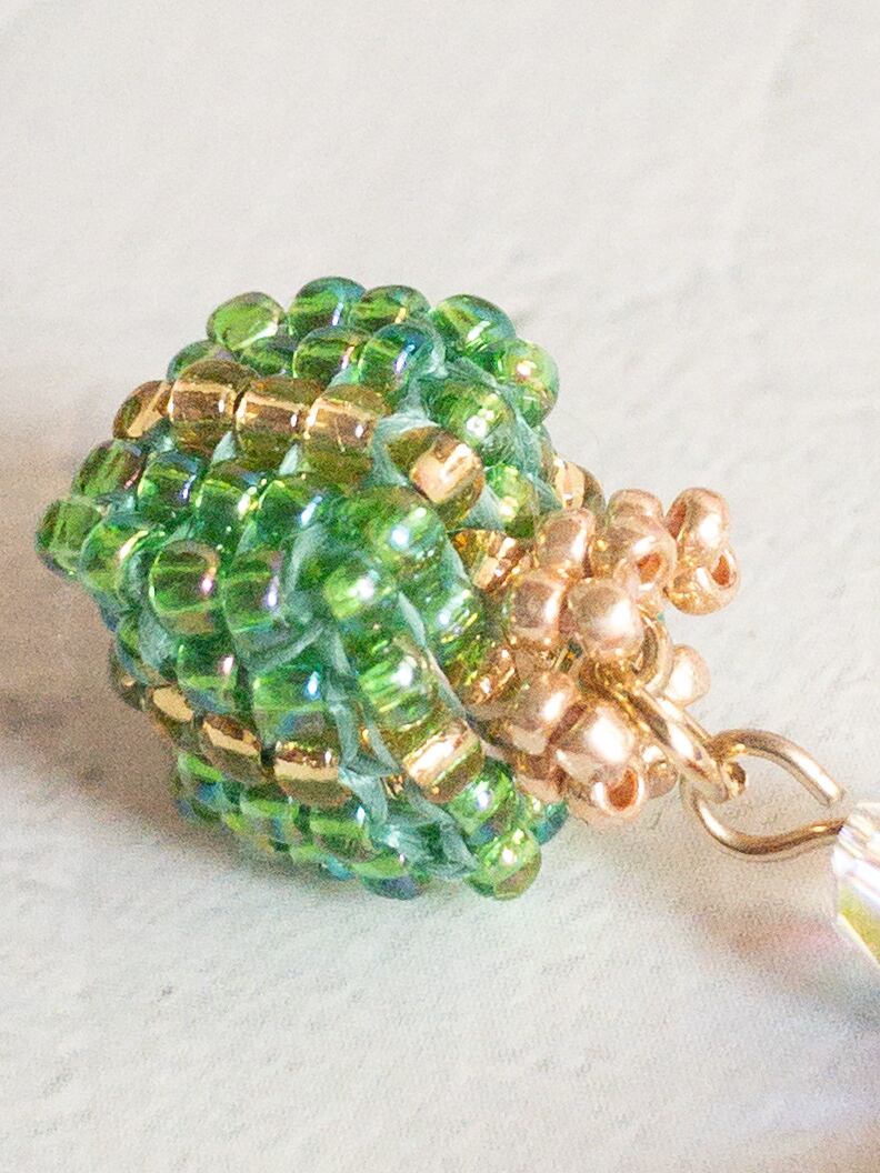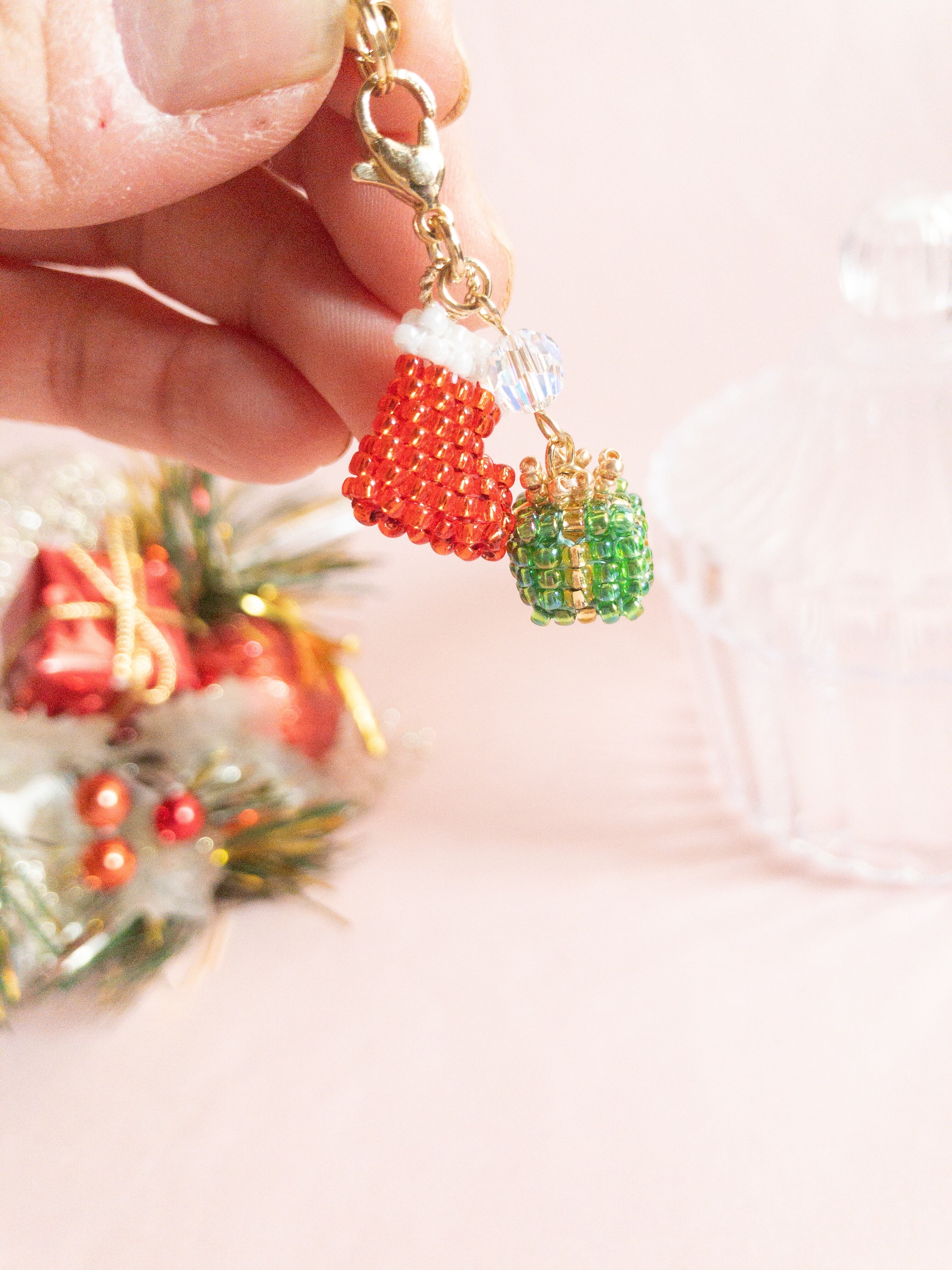 また、プレゼントモチーフは、よりリアルな感じを出せるように、ビーズの大きさを変えて作ってある所があります。
