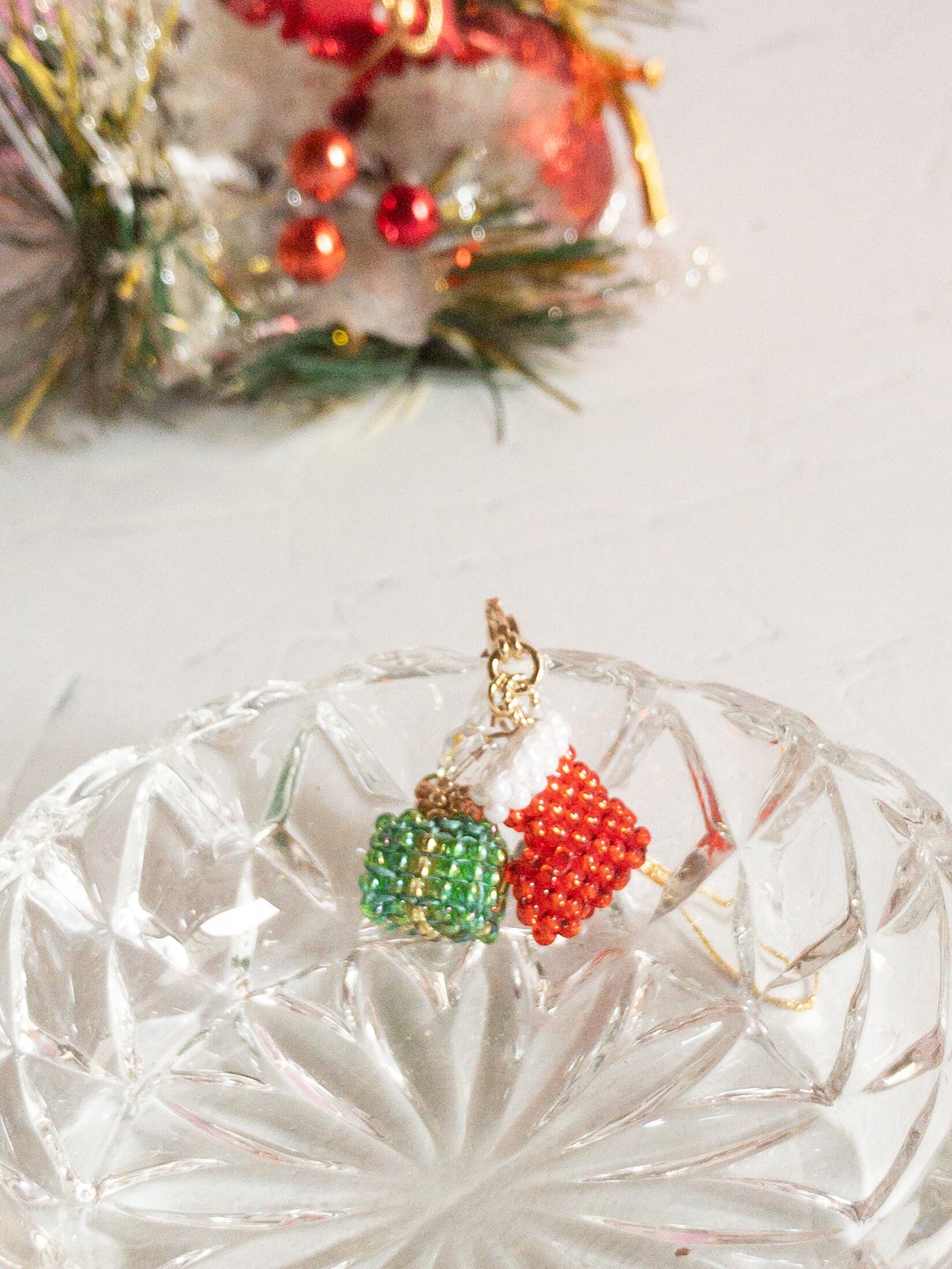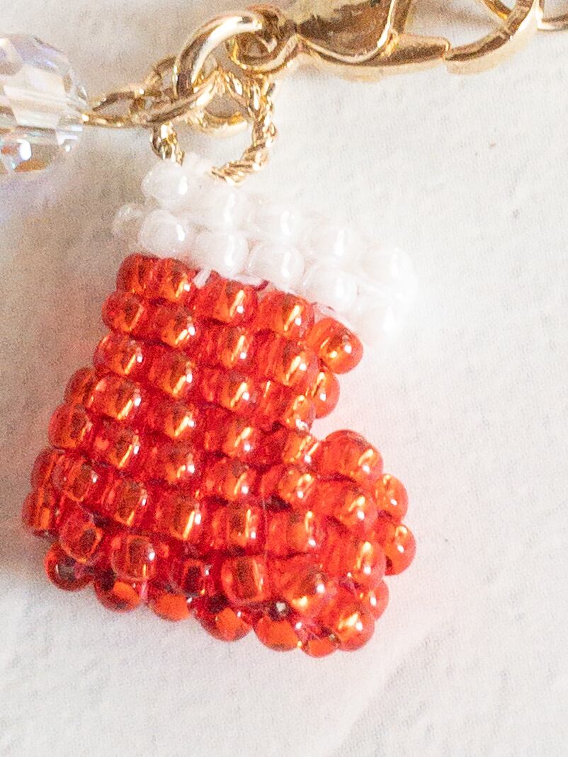 クリスマスなので、ビーズもキラキラの入ったビーズを使用して、とても華やかな作品になりました。